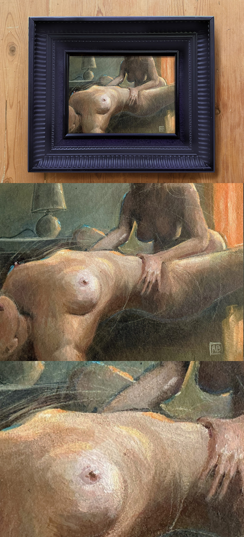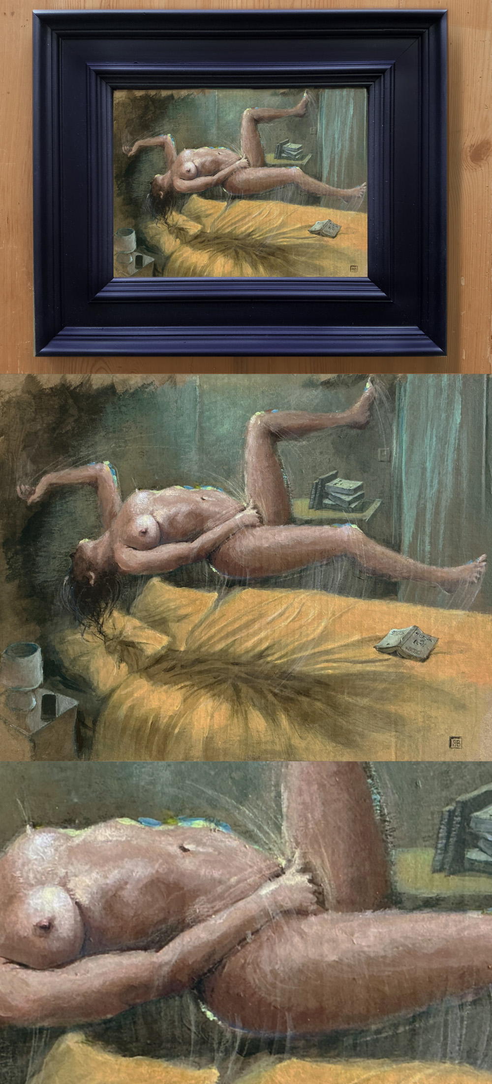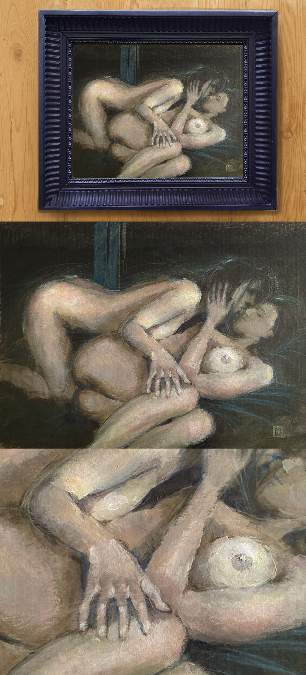 Format cadre extérieur 31x26cm, intérieur peinture 18,5x23cm