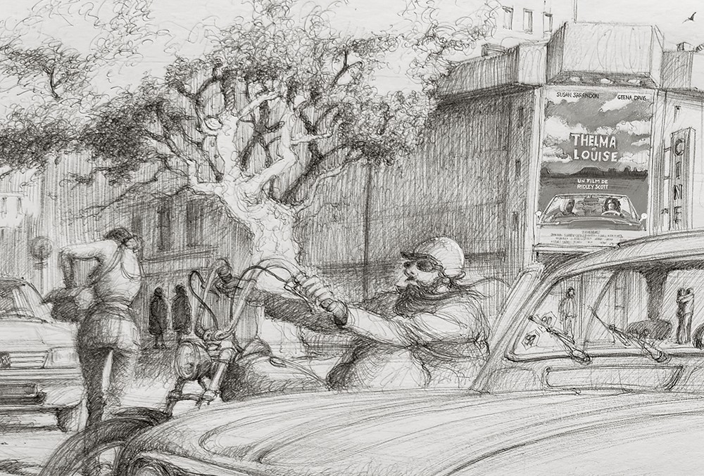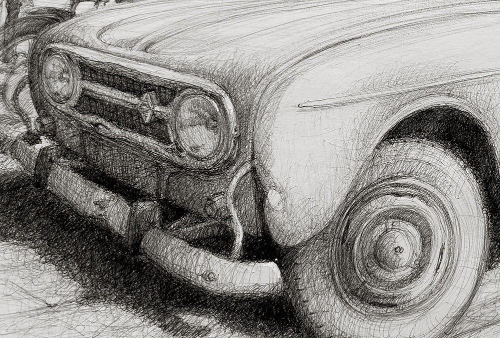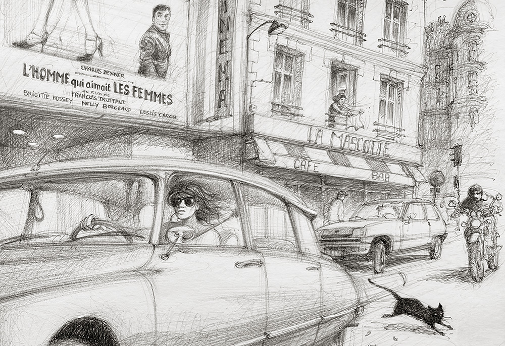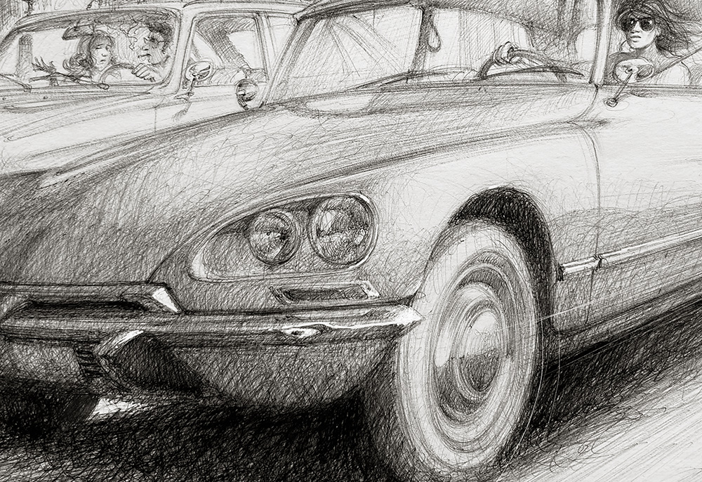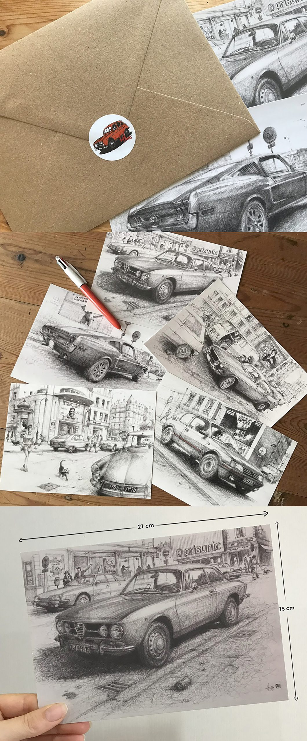 AUTOMOBIC est une série de dessins d’automobiles réalisés directement au stylo Bic. Des voitures passent ou stationnent devant des cinémas de quartier dans des rues foisonnantes issues de mon imaginaire ou de souvenirs. Et si il y a de la nostalgie dans ces dessins, je ne saurais affirmer que c’était mieux avant. J’aime avoir le pouvoir de voyager dans le temps avec un simple stylo Bic et rendre visite à mon enfance.